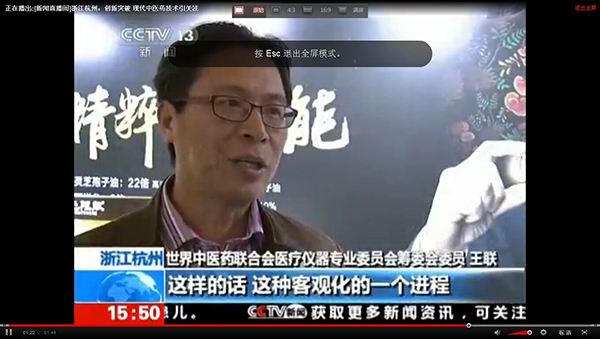 2015全國藥店年度峰會上我公司王總接受中央電視臺采訪,就目前中醫(yī)診療設(shè)備及中草藥現(xiàn)代化進(jìn)程發(fā)表自己的見解。